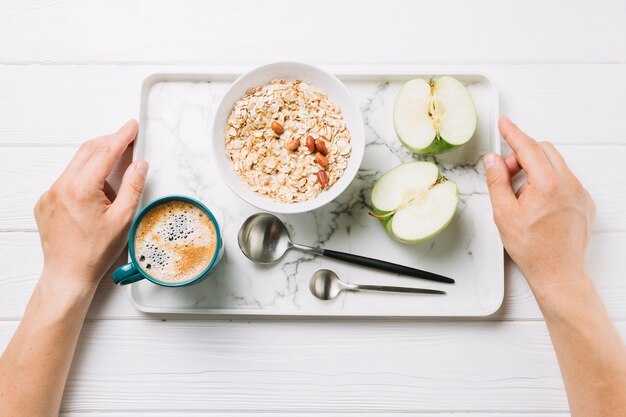 - Измерьте нужное количество хлопьев: для одной порции используйте около 40-50 грамм.